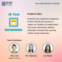Congratulations to the winners of the 2023 Bai Xian Project Award: ESG in East Asia, Hi-Tech, and Team of Preservation and Innovation! We can’t wait to see the final results of your innovative ideas. Find out more about this year’s winning project ideas below!